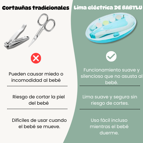 → BABYLU está diseñado para durar. El motor es más silencioso, el limado es más suave y las cabezas son más resistentes. Muchos padres probaron herramientas más baratas primero y luego cambiaron a BABYLU por su calidad y seguridad.